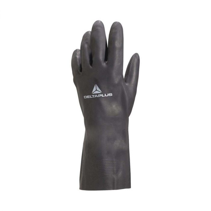 Rękawice ochronne z neoprenu. Wnętrze flokowane bawełną (100%), która pochłania pot dla lepszego komfortu użytkowania. W części chwytnej struktura z urzeźbieniem co daje pewniejszy chwyt przedmiotów mokrych lub zaolejonych.