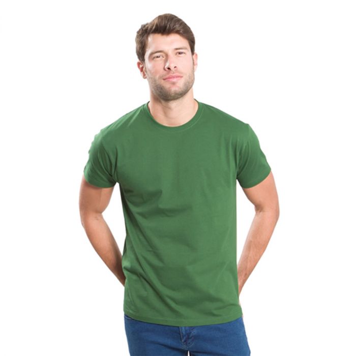 T-shirt męski dostępny w róznych z krótkim rękawem o gramaturze 190 g/m2. Został wykonany bez bocznych szwów z podwójnymi szwami na ramionach. Wzmocniony lycrą ściągacz z taśmą wzmacniająca. Dzięki takiemu wykonaniu możemy być pewni, że koszulka długo zachowa swoją jakość i wytrzymałość. Skład to 100% bawełna stabilizowana.